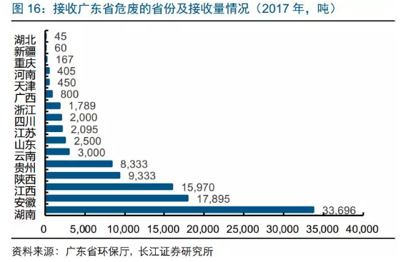 2017年跨省转移危废近10万吨,集中去湖南、安徽