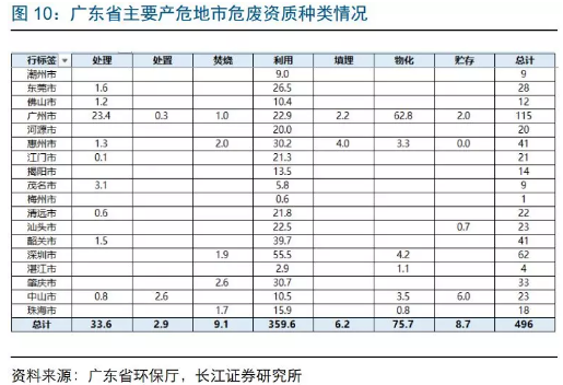 东莞市:东江环保(12.3万吨利用,市占率44%)市占率较高;