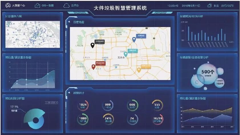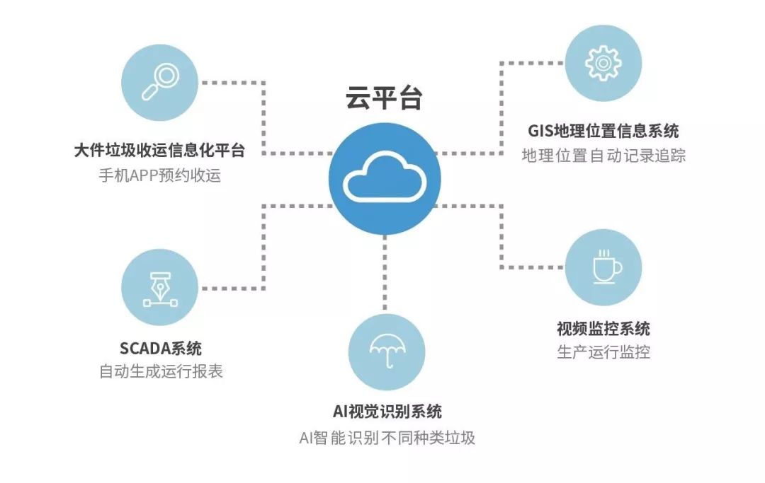 在信息化应用方面,环创科技运用物联网、大数据和人工智能技术构建的“环创科技云平台”,不仅整合了SCADA数据采集监控系统、GIS车辆地理信息系统、AI视觉识别系统、APP大件垃圾收运管理系统、视频自动监控系统(VSCS)等多源系统数据,还通过深度学习、大数据统计分析等智能分析技术,对城市大件垃圾处理量、物品类别及智能收运处置管理进行精准监测和可视化展示,实现实时大件垃圾收运情况及设备运维事件分析、自动识别、推送和报警、设备与溯源分析、预测与建议等智能分析,形成云端到设备层数据的无缝链接,应用大数据驱动分析与决策。