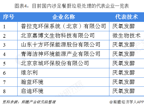 由于我国餐厨垃圾处理行业尚处于起步阶段,从而市场上从业的企业数量不多,竞争格局较为分散,目前涉足餐厨垃圾处理的企业主要是区域环境集团型企业和以提供技术和设备为主的企业,且单个企业的处置规模较小,还没有出现具有明显优势的行业龙头。由于资源化处理是餐厨垃圾处理的主流方向,因此,拥有餐厨垃圾资源化处理技术的企业未来有望率先受益垃圾分类带来的餐厨垃圾处理需求放量。