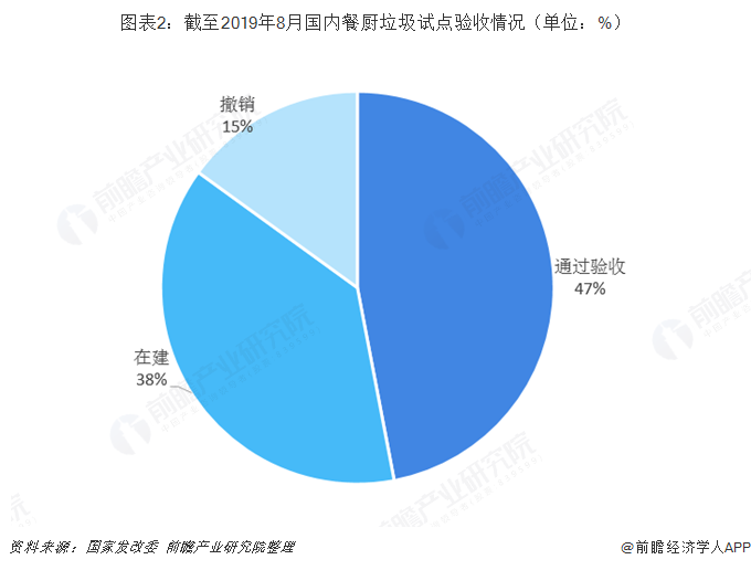 我国餐厨垃圾处理属于环保行业中的新兴业务领域,仍处于部分城市试点阶段,目前国内餐厨垃圾处理试点百城验收近半,但行业的发展仍是依靠国家政策层面上的补贴。行业竞争格局方面,我国餐厨垃圾处理行业尚处于起步阶段,从业企业数量不多,竞争格局较为分散,且行业中的大部分企业主要选择厌氧发酵技术作为自身的餐厨垃圾处理技术。