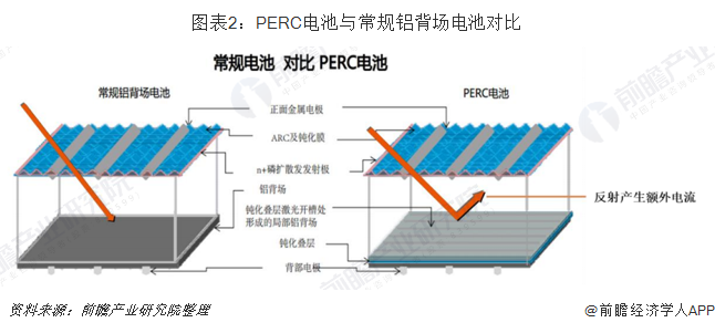PERC,即发射极钝化和背面接触(Passivatedemitterandrearcontact),利用特殊材料在电池片背面形成钝化层作为背反射器,增加长波光的吸收,同时增大P-N极间的电势差,降低电子复合,提高效率。PERC不仅可以做成单面,还可以做成双面电池。