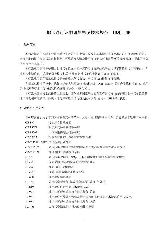 排污许可证申请与核发技术规范 印刷工业