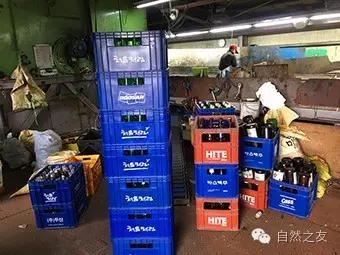 这些完好的玻璃酒瓶,会按照不同品牌,送回到各生产厂,清洗后重新灌装,实现了REUSE(重复使用)。