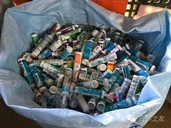 一个汤足饭饱的晚上,我们的“垃圾小分队”还在路边发现了一个有害垃圾收集箱:各种荧光灯管、灯泡、电池等,都存放在这里,等待被运往一个安全的处理厂。