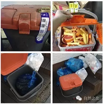 饭后沿路溜达,在许多餐馆、商铺乃至居民家门外,我们都见到了各式各样的厨余垃圾桶。小号桶在10升左右,大餐馆的桶则更大更多。每个厨余桶都有密闭的盖子,可以防虫防臭;有的在下方还带有排水龙头,类似我们用过的“波卡西堆肥桶”。(点这里 查看家庭快速无臭堆肥哦~)