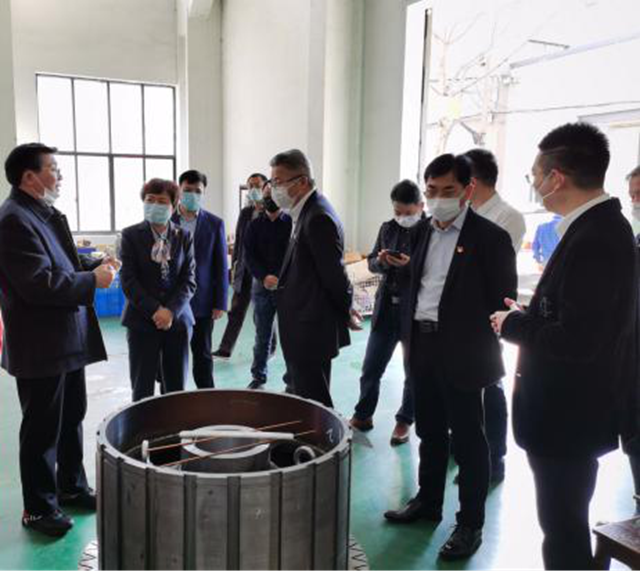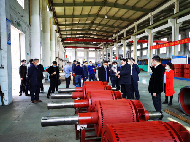 谢董一行参观了公司的生产车间、测试车间,对永发机电的生产能力、技术水平、工艺流程进行了详细了解。高董首先对谢董一行的到来表示热烈欢迎,向谢董一行汇报了永发公司目前业务开展情况。在听完高董的介绍后,谢董对永发机电的研发能力和制造能力给予了充分肯定,她认为,永发机电拥有五十余年的电机制造经验,尤其是目前不断涉及的水利领域、军工领域,创新研究的努力与成果值得赞赏!并表示省机电集团会积极考虑与永发公司在风电设备、军工设备等领域进行合作。