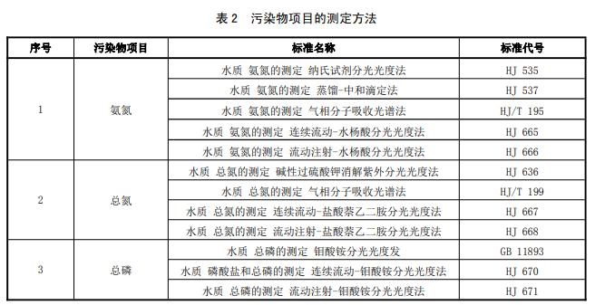 对水污染物测定的项目及与之对应的测定方法见表2,表2中对部分污染物指标的测定,可根据检测资源情况,选择适宜的方法,但对同一项指标,每次测定均宜采用同一种方法,测定数值异常时,可用不同的方法验证。