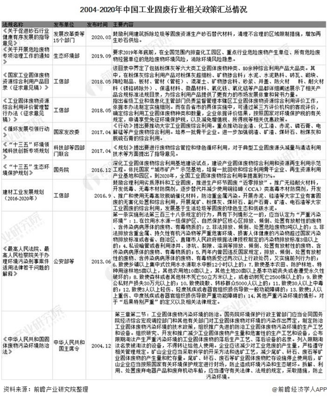 原标题:深度解析!2020年中国及各省市工业固废处理行业相关政策汇总及解读分析
