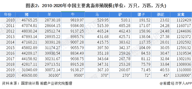 2019年受非洲猪瘟的影响,我国生猪养殖规模大幅下滑,2020年,在全球生猪养殖规模大幅下降的背景下,中国的生猪养殖规模在国家相关政策指导和扶持下有所恢复。总体来看,在禽畜需求增长的推动下,我国禽畜养殖规模整体呈现增长趋势。