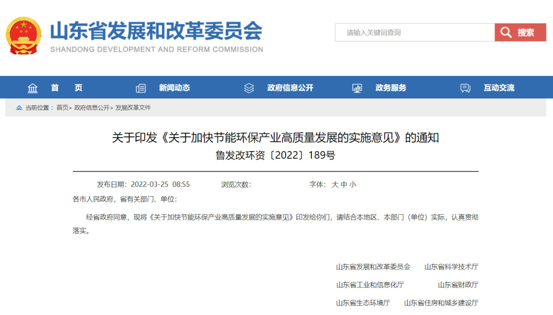 1、关于印发《关于加快节能环保产业高质量发展的实施意见》的通知,山东省发改委,2022-03-25