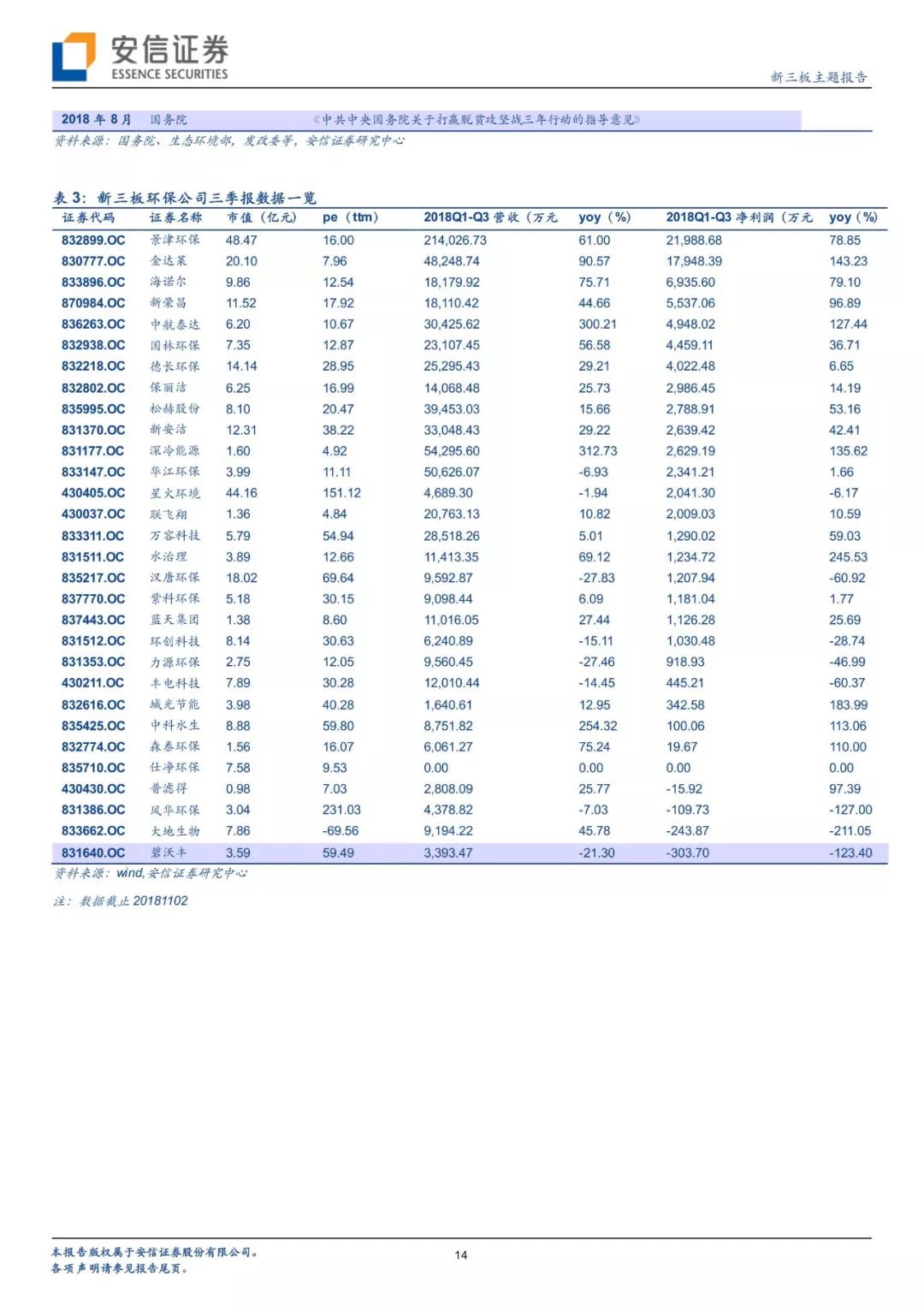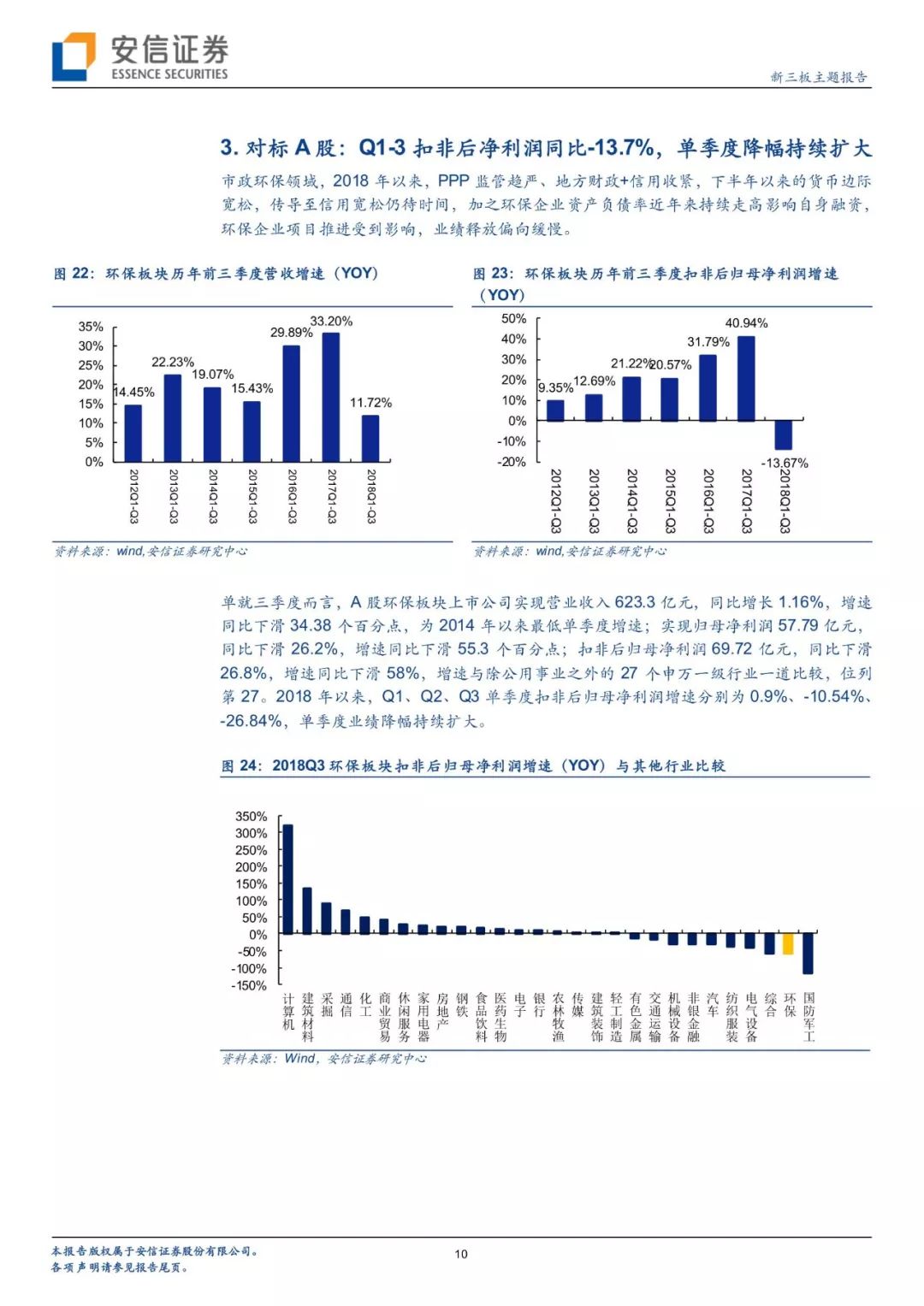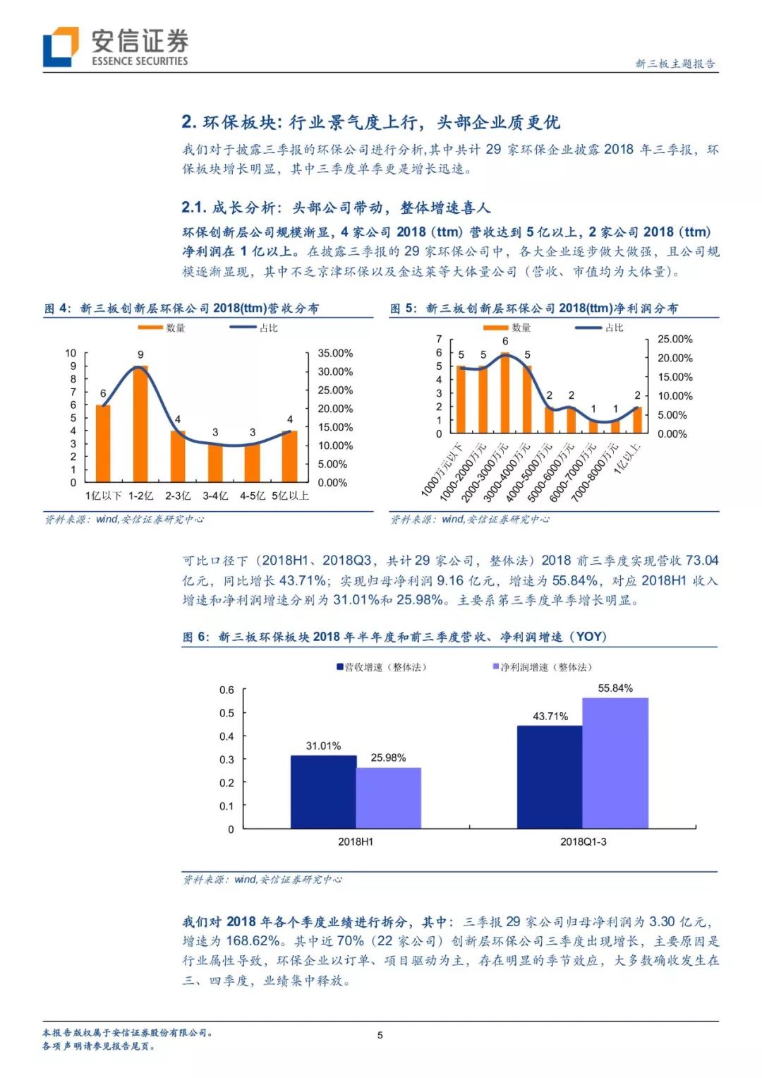 从政策进展看环境变迁路径,环境治理已经实现围绕大气+水+土壤三大维度建立起“环保税+排污许可证”两大保障、从城市走向农村的一体化大环保格局。自年初环保税、排污许可证实施以来,政策力度不减且频频出台,在肯定我国环境治理已取得阶段性的胜利的同时,进行大气、水、固废、土壤等细分领域的深化推进。我们对于2018年以来各细分板块政策及变迁进行了梳理。而新三板拥有400家公司,覆盖了大气治理、水治理、固废治理等各个领域。我们继续看好环保板块,建议从政策推进进程中发掘潜在机会,建议关注水治理、固废治理和再生资源板块投资机会。